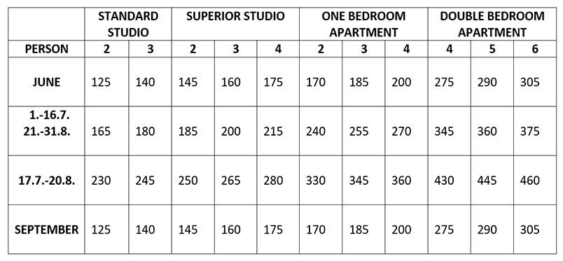 Price list (Euro) - Season 2026